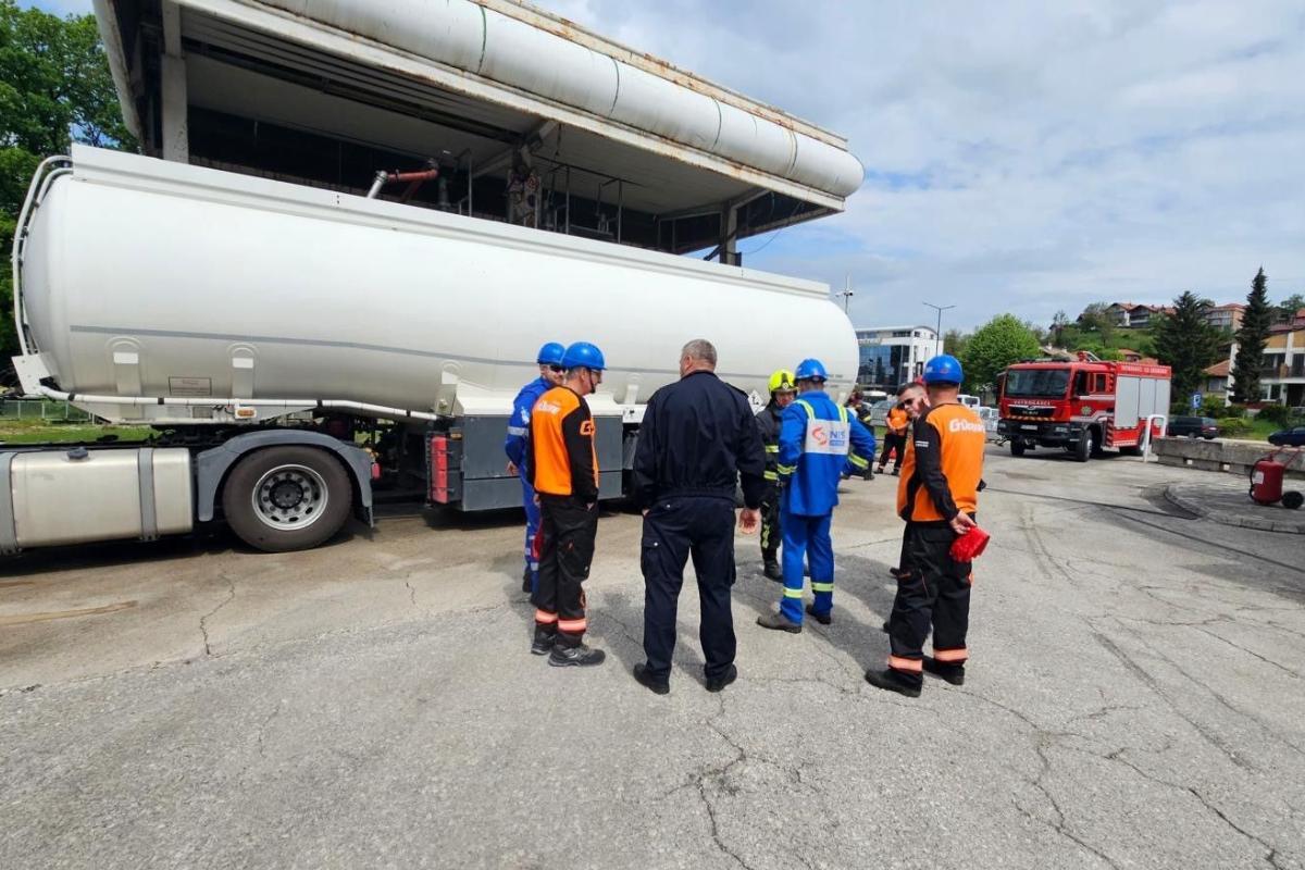 Jučer je na našem naftnom terminalu u Srebreniku uspješno realizovana HSE vježba simulacije vanredne situacije-prelivanje goriva iz komore autocisterne usljed kvara na sistemu.